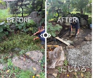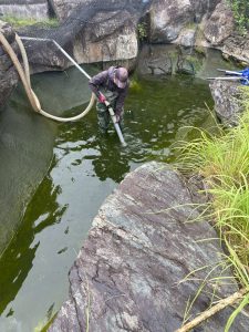 作業内容:庭池の清掃 ご依頼の経緯・状況 定期的に清掃作業をさせて頂いており、夏がすぎ生き...