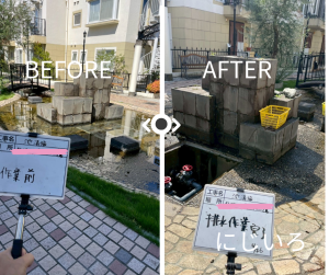 作業内容:マンション共用部分の小川・池清掃 今回は、三鷹市にあるマンションの共用部分に設置...