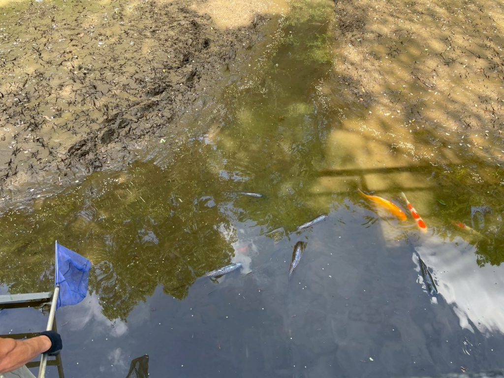 作業後、鯉たちは新しい池に無事放流され、元気に泳ぐ姿を確認できました。