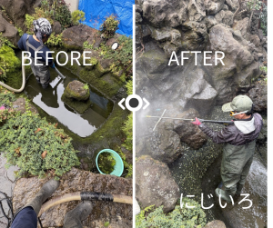作業内容:庭池の清掃 ご依頼の経緯・状況 定期的に清掃作業をさせて頂いており、夏がすぎ生き...